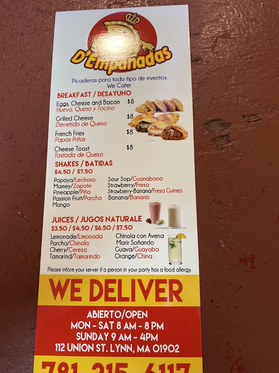 Welcome to D'empanadas Lynn, a culinary gem nestled in the heart of Lynn, Massachusetts. Located at 112 Union Street, this vibrant eatery specializes in a delectable array of empanadas and sandwiches that transport your taste buds straight to the Caribbean. Known for their exceptional flavor profiles and warm, inviting atmosphere, D'empanadas Lynn has quickly become a beloved destination for locals and visitors alike.